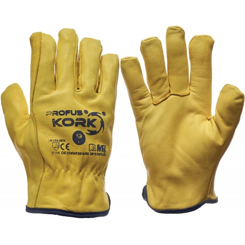 Rękawice ochronne KORK zostały wykonane z wysokiej jakości skóry licowej koziej. Z tej racji produkt ten jest wyjątkowo wytrzymały, a zarazem przyjazny i bezpieczny dla rąk. Aby wzmocnić konstrukcję rękawic, cała dłoń została wykonana w całości ze skóry. Ponadto KORK posiada marszczenia na mankiecie, które uniemożliwiają zsunięcie się rękawicy z dłoni.