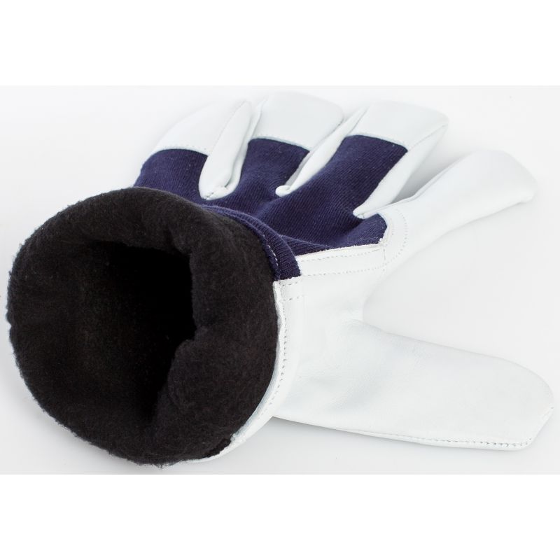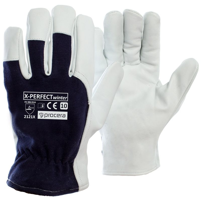 Rękawice X-PERFECT WINTER wykonane w części chwytnej z jednego kawałka licowej skóry koziej , wierzch wykonany z elastycznej tkaniny w niebieskim kolorze, ocieplane polarem. Zakończone szerokim mankietem z gumką. Idealne do prac manualnych. Bardzo dobra chwytność. Duża wytrzymałość na ścieranie. Dobrze dopasowują się do kształtu dłoni. CE EN 388