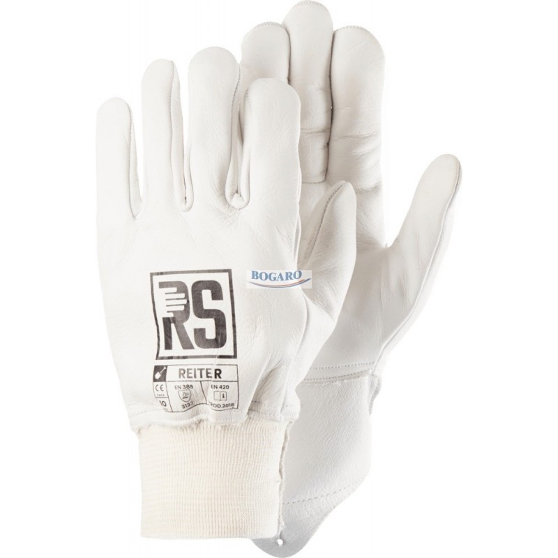 Rękawica całoskórzana ze skóry bydlęcej, przeznaczona do prac ogólnych. Dodatkowy element skóry w części nadgarstkowej chroni