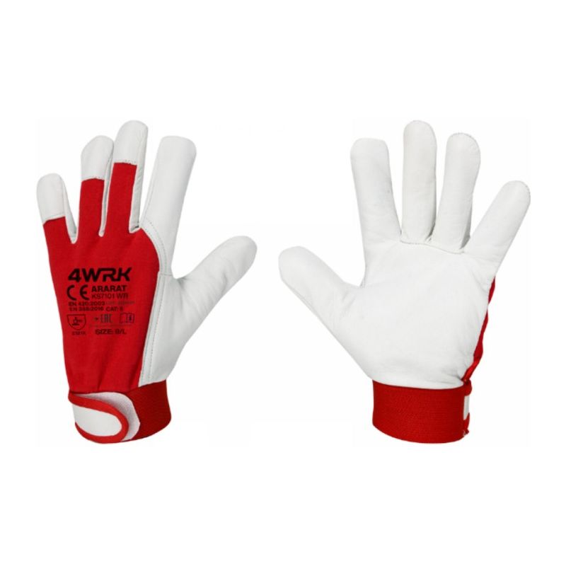 Rękawice z wysokojakościowej, miękkiej skóry licowej koziej w naturalnym kolorze, a w części wierzchniej z elastycznej dzianiny bawełnianej w kolorze czerwonym. Rękawice znajdują zastosowanie przy pracach ogólnych i mechanicznych ze względu na odporność na ścieranie i rozdzieranie. Ponadto, wykazują dużą elastyczność, a delikatna kozia skóra zapewnia bardzo dobry chwyt i przyczepność.
