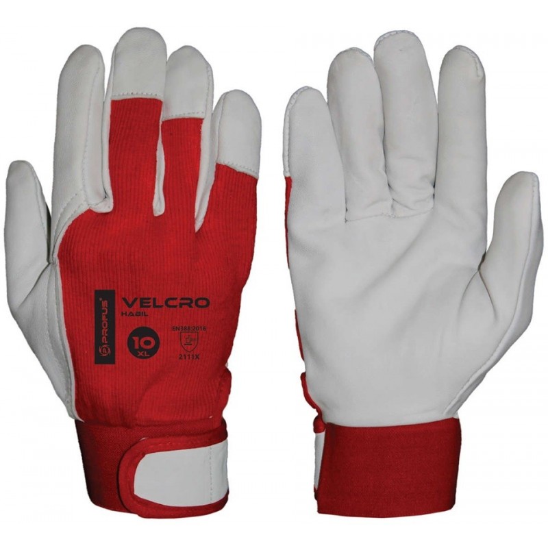 Rękawice ochronne VELCRO zostały wykonane z wysokiej jakości skóry licowej koziej, natomiast ich wierzch – z dzianiny bawełnianej. Z tej racji produkt ten jest wyjątkowo wytrzymały, a zarazem przyjazny i bezpieczny dla rąk. Aby wzmocnić konstrukcję rękawic, kciuk i palec wskazujący zostały wykonane w całości ze skóry. Ponadto VELCRO posiada ściągacz w nadgarstku zapinan na rzep, który uniemożliwia zsunięcie się rękawicy z dłoni.