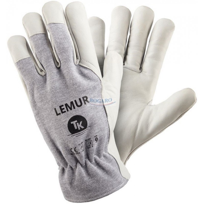 Lemur jest rękawicą monterską wzmacnianą selekcjonowaną skórą licową kozią. Skóra wyprawiana tak by wewnątrz była przyjemna i miękka – aksamitna, zaś na zewnątrz gładka. Takie wyprawienie pozwala połączyć ergonomię pracy i ochronę dłoni również w wymagających warunkach. Rozmiarowanie rękawicy pozwala na dobranie idealnego rozmiaru pasującego do dłoni tak, aby umożliwić wygodną pracę zarówno tę o charakterze ogólnym i monterskim, jak również taką która wymaga bardzo dużej precyzji. Wykonanie z selekcjonowanej naturalnej skóry koziej i wysokiej jakości bawełny umożliwia swobodne oddychanie dłoni, co znacząco poprawia ergonomię pracy. Kciuk obszyty skórą zapewnia pełną ochronę dłoni i wydłuża żywotność rękawicy, dzięki ochronie najbardziej obciążonych w trakcie pracy miejsc na rękawicy. Zakończenie gumką ściągająca utrzymuje rękawicę we właściwym położeniu na nadgarstku.