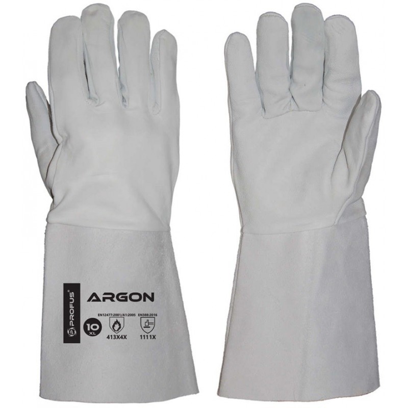 ARGON to rękawice spawalnicze typu B, odznaczają się wysoką zręcznością i pełną mobilnością ruchów. Mają za zadanie chronić dłonie i nadgarstki podczas spawania, zwłaszcza przed drobnymi rozpryskami stopionego metalu, krótkotrwałym działaniem płomienia, a także przed ciepłem kontaktowym i konwekcyjnym. Kroj rękawicy odpowiada za właściwe dopasowanie rękawicy do dłoni użytkownika co poprawia jej manualność.