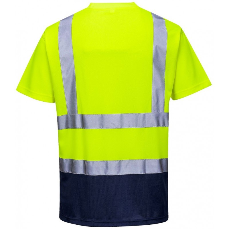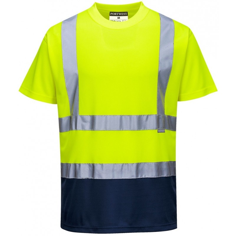Ten nowy kontrastowy T-shirt gwarantuje swobodę ruchów w każdym środowisku pracy.Taśmy odblaskowe zapewniają najwyższą widoczność użytkownika i bezpieczeństwo w czasie pracy na drodze.