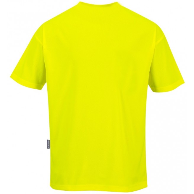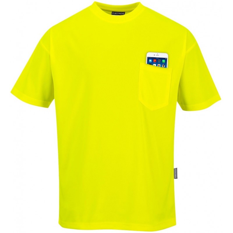 T-shirt Day-Vis z kieszonką został wykonany ze znakomicie odprowadzającego wilgoć poliestru zapewniającego użytkownikowi doskonały komfort pracy. Koszulka posiada kieszonkę na klatce piersiowej po lewej stronie i taśmowane szwy na szyi dla jeszcze większej wygody użytkowania. Jest bardzo luźna i doskonale przewiewna.