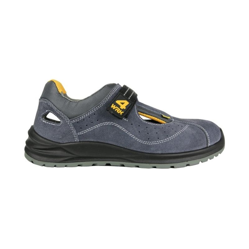 Atria S1 ESD to skórzane sandały robocze, które zapewniają wygodę i ochronę użytkownikowi. Cholewka buta wykonana jest ze szlifowanej skóry, w kolorze szarym z detalami białych nici. Sandały mają praktyczne zapięcie na rzep, które umożliwia łatwe zakładanie i dopasowanie do stopy. Podeszwa buta wykonana jest z dwukomponentowego poliuretanu (PU/PU), który gwarantuje doskonałą przyczepność na wielu powierzchniach. Dodatkowo, buty są antyelektrostatyczne, co oznacza, że skutecznie rozpraszają ładunki elektrostatyczne, minimalizując ryzyko porażenia elektrycznego. Wkładka w pięcie buta absorbująca energię skutecznie chroni stopy przed wstrząsami i zapewnia komfort nawet podczas długotrwałego użytkowania. Buty posiadają metalowy podnosek, który dodatkowo zabezpiecza palce stopy przed ewentualnymi uderzeniami lub upadkiem ciężkich przedmiotów. Sandały posiadają pomarańczową oddychającą tkaninę MESH, która zapewnia odpowiednią wentylację stóp, utrzymując je suche i komfortowe nawet w trudnych warunkach pracy. Dzięki temu, użytkownik może cieszyć się odpowiednią cyrkulacją powietrza i komfortem nawet podczas długotrwałego noszenia butów.