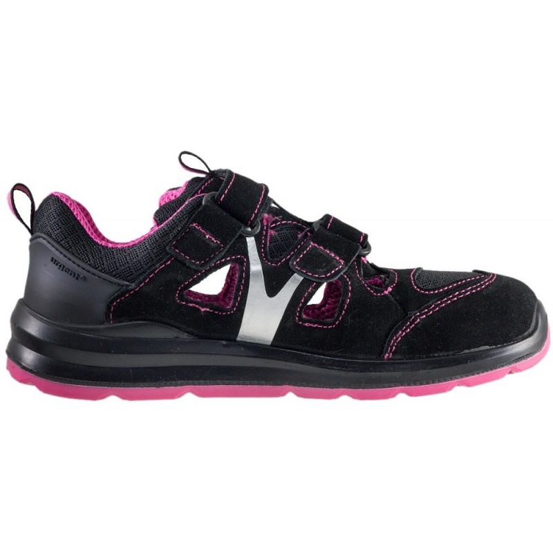 Sandał bezpieczny z metalowym podnoskiem. Zamknięty obszar pięty, właściwości antyelektrostatyczne, absorpcja energii w pięcie. Cholewka wykonana z zamszowej bydlęcej skóry + materiał typu siateczka, wyścióka typu siateczka