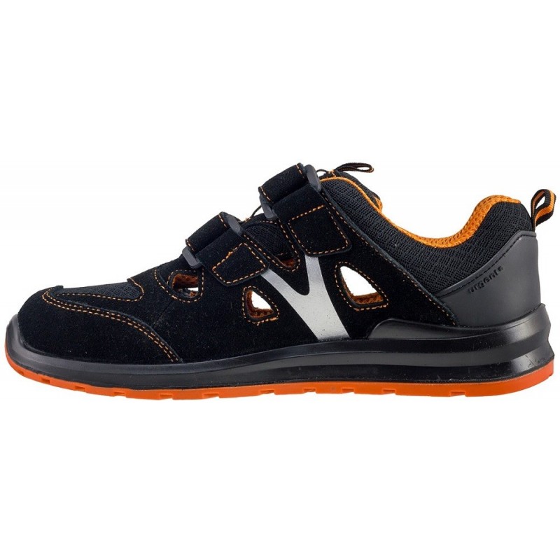 Sandał bezpieczny z metalowym podnoskiem. Zamknięty obszar pięty, właściwości antyelektrostatyczne, absorpcja energii w pięcie.