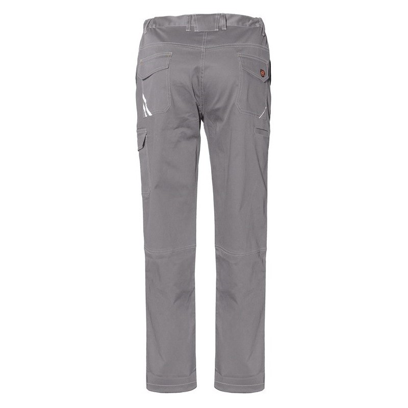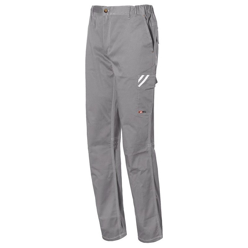 Spodnie do pasa ISSA 8036B z elastycznego materiału z elementami odblaskowymi. Posiadają dwie kieszenie przednie i dwie tylne, boczną kieszeń na nogawce oraz kieszeń na metrówkę. Elastyczny pas zwiększa komfort użytkowania.