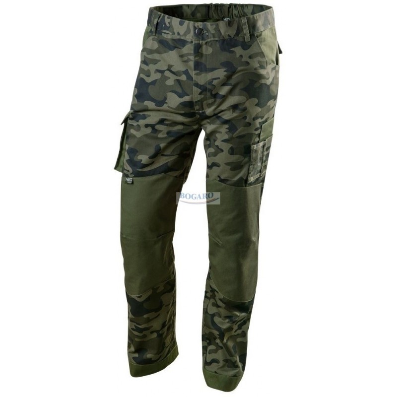 Spodnie robocze NEO z serii CAMO wykonane są z wysokiej jakości bawełniano- poliestrowej tkaniny. Profilowane kolana z kieszeniami na nakolanniki ochronne oraz pojemne i wytrzymałe kieszenie znacznie podnoszą komfort pracy. Elastycznym elementy umieszczone w pasie pozwalają na lepsze dopasowanie rozmiaru. Potrójne szwy wewnętrzne zwiększają odporność na rozerwania. Spodnie wyróżnia unikalny wzór moro. Modna kolorystyka oraz nowoczesny fason pozwalają na użytkowanie produktu również poza pracą. Gwarantem jakości jest certyfikat europejski oraz wykonanie zgodne z normą EN ISO 13688:2013. Marka NEO spełnia oczekiwania profesjonalistów.