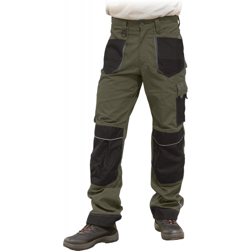 Spodnie ochronne do pasa FORMEN LH-FMN-T w kolorze khaki z czarnymi elementami przeznaczone do prowadzenia ogólnych prac zapewniające podstawową ochronę