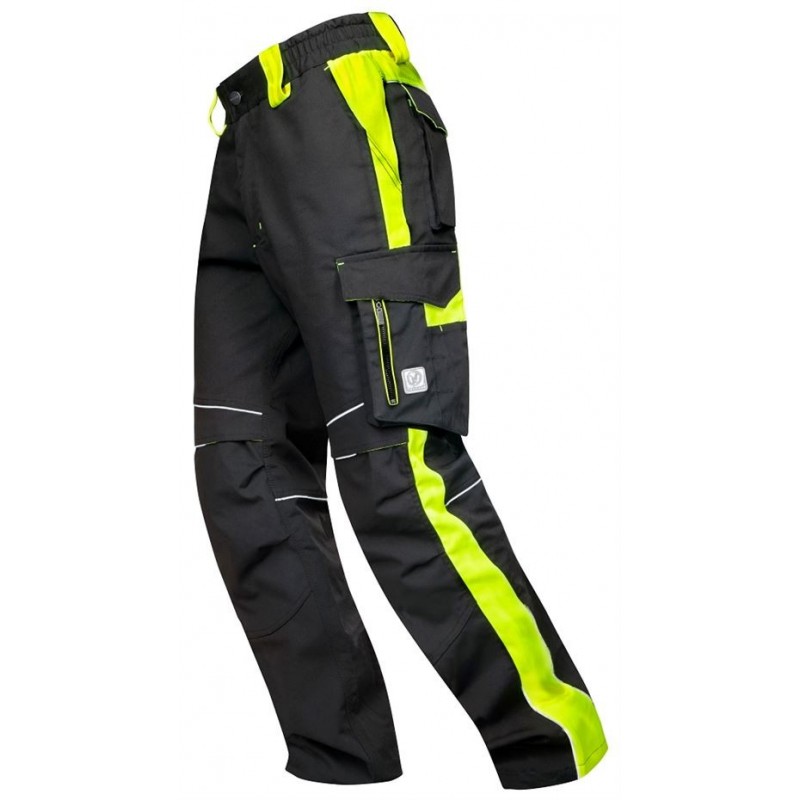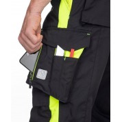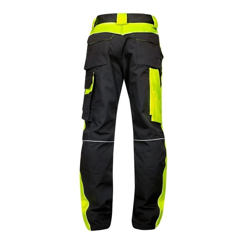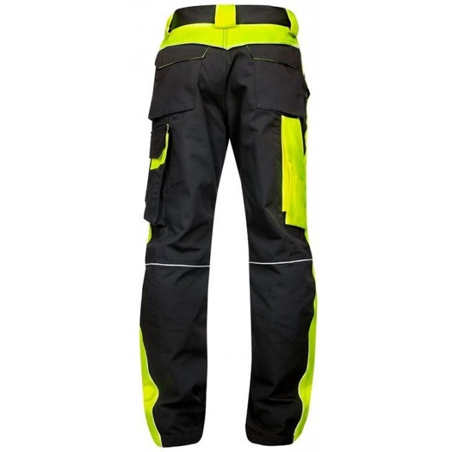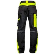 Monterskie spodnie robocze do pasa Ardon NEON w kolorze czarnym z żółtymi ostrzegawczymi wstawkami