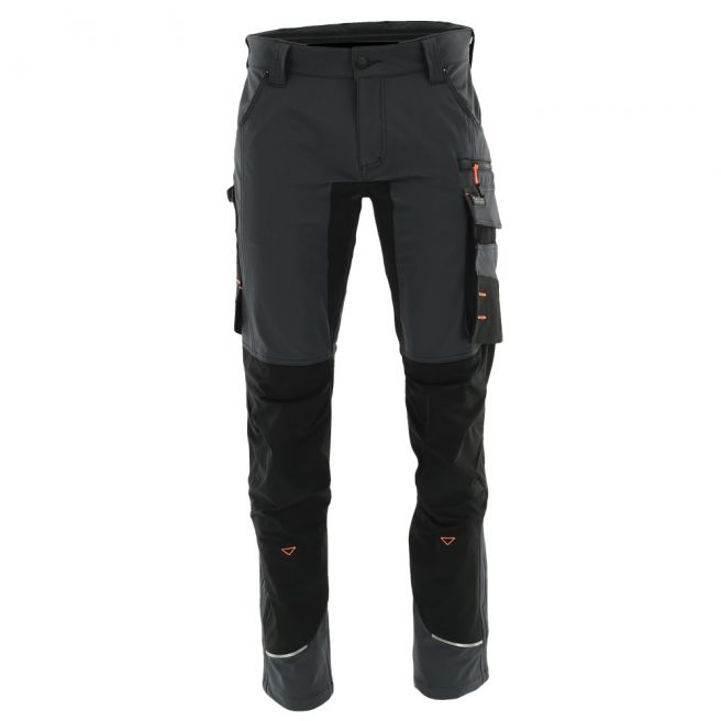 Spodnie robocze do pasa SARA MOTIONFLEX kolor grafitowy + pomarańczowy odblaskowy
