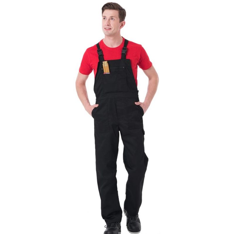 Spodnie ochronne ogrodniczki Master SM przeznaczone do ochrony podczas pracy. Wykonane z połączenia poliestru i bawełny zapewniają optymalną wygodę i wytrzymałość. Dzięki dodatkowej regulacji w pasie i długości szelek łatwiej można je dopasować do konkretnej sylwetki użytkownika. Spodnie wykonane z wysokiej jakości materiału, który zapewnia, iż po wielokrotnym praniu kolory pozostają wciąż intensywne, a rozmiar stabilny