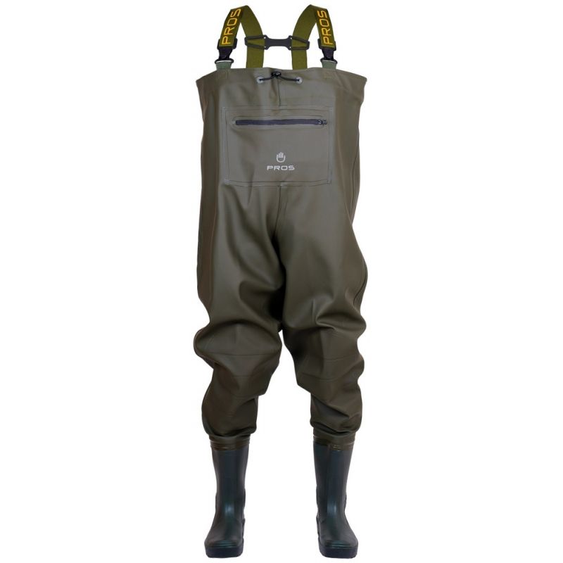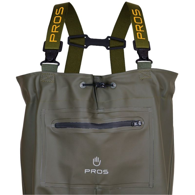 Spodniobuty premium pocket z wgrzanymi na stałe wysokiej jakości kaloszami i wzmocnieniami na kolanach. Zapewniają skuteczną ochronę przed wodą. Technika obustronnego zgrzewania zwiększa wytrzymałość szwów. Kieszeń wewnętrzna na przechowywanie dokumentów. Dodatkowa kieszeń zewnętrzna zapinana zamkiem bryzgoszczelnym idealna na przechowywanie telefonu. Komfort użytkowania produktu poprawiają elastyczne, regulowane szelki oraz ściągacz na wysokości klatki piersiowej zapobiegający nabraniu wody do wnętrza.