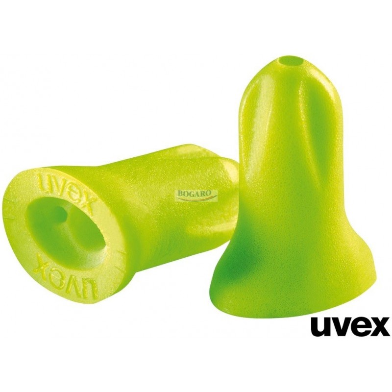 Innowacyjny kształt zatyczek do uszu uvex hi-com zmniejsza poziom hałasu tworzący się w uchu wewnętrznym podczas używania ochrony słuchu. Wyprofilowane zagłębienia zwiększają powierzchnię w kierunku bębenka. Zatyczki do uszu zapewniają bardziej miękką akustykę i absorbują hałas, pozwalając na zrozumienie mowy.