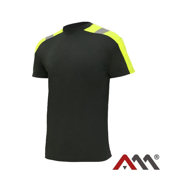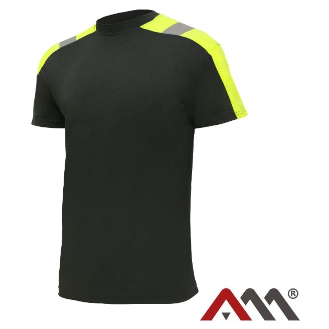 T-shirt CLASSWORK SH, koszulka czarno - żółta fluorescencyjna z krótkim rękawem, z pasami odblaskowymi na ramionach. Gramatura 175g/m2. Skład 45% bawełna, 55% poliester.
