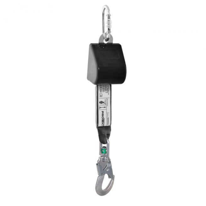 Urządzenie samohamowne ROLEX 7 z rozwijaną taśmą poliestrową o szerokości 47 mm ze zintegrowanym amortyzatorem bezpieczeństwa. Wyposażony w zatrzaśnik z krętlikiem.