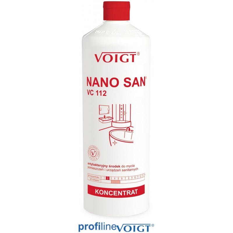 Środek antybakteryjny, antystatyczny NANO SAN VC 112 do bieżącego mycia pomieszczeń i urządzeń sanitarnych o przyjemnym zapachu grejpfrutów.