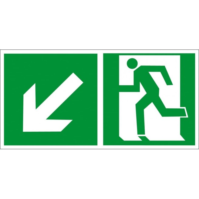 Znak Kierunek do wyjścia w lewo i w dół (za drzwiami) ANRO E001/2