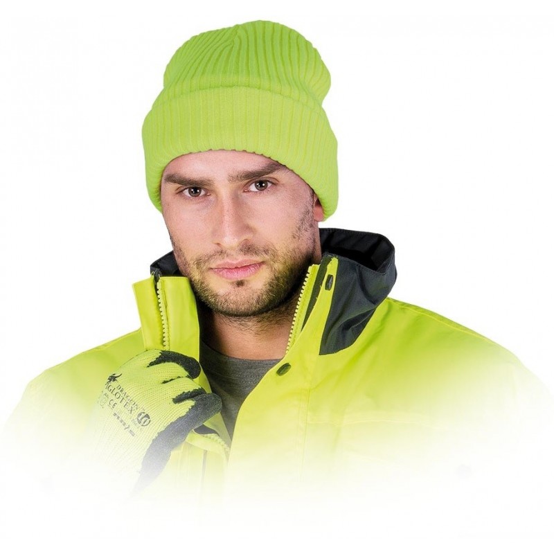 Czapka zimowa dziana w kolorze fluorescencyjnym.