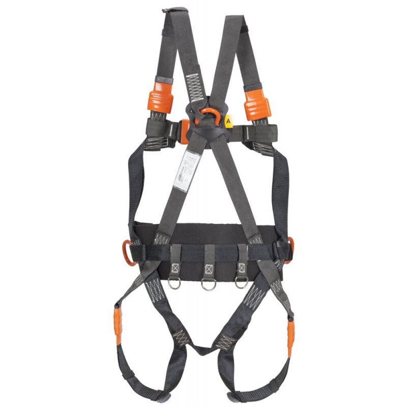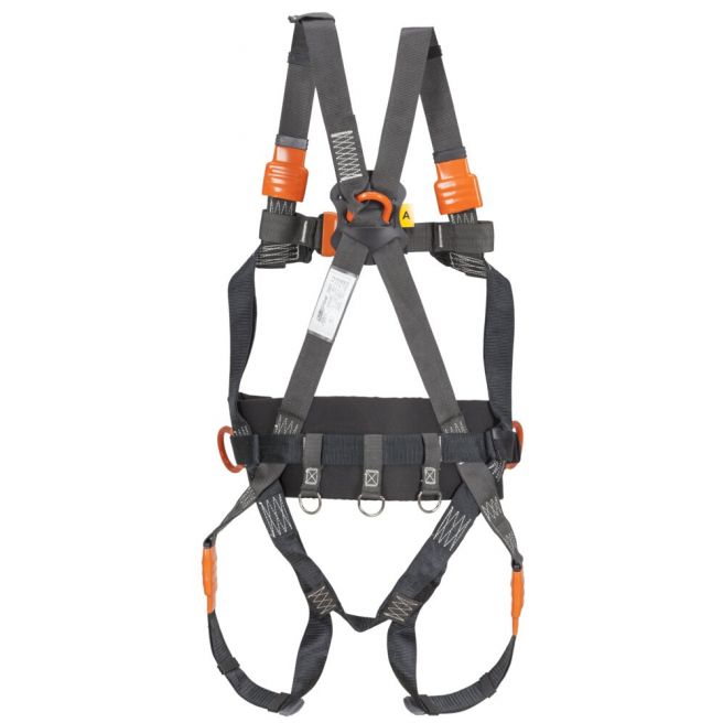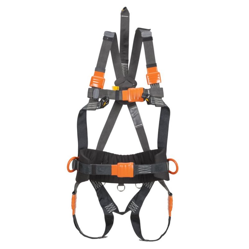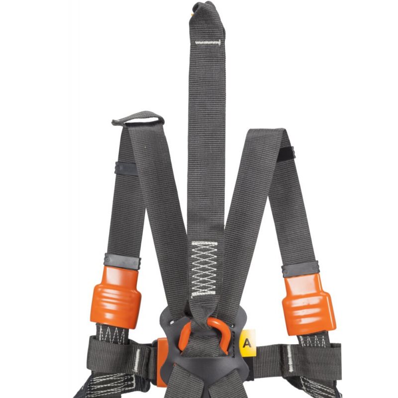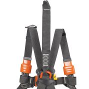 Szelki bezpieczeństwa z taśmami aramidowymi o podniesionej odporności na działanie płomienia.