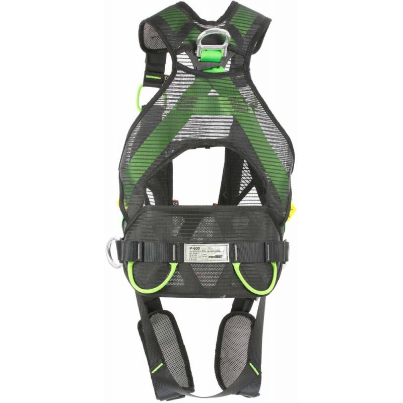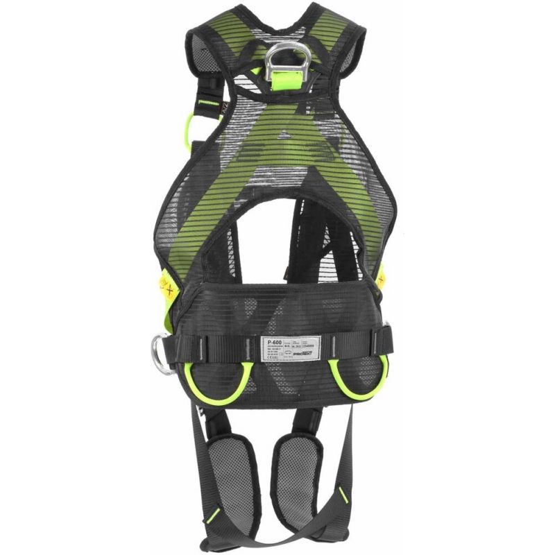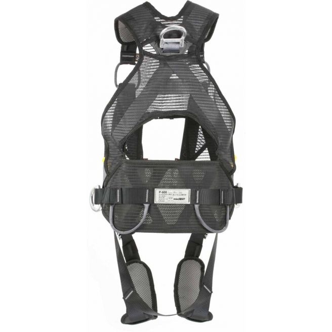 P-600 to szelki bezpieczeństwa zintegrowane z pasem do pracy w podparciu. Wykonane na bazie konstrukcji PRO-FIT, umożliwiającej szybkie zakładanie oraz dopasowanie uprzęży do sylwetki użytkownika. Kamizelka uszyta z siatki zapewnia swobodne oddychanie skóry oraz zapobiega poceniu się gwarantując komfort pracy. P-600 są wyposażone w 3 punkty zaczepowe. Tylny w postaci aluminiowej klamry D i dwa przednie: piersiowy i brzuszny w postaci pary spinanych ze sobą pętli. Brzuszny punkt zaczepowy jest przeznaczony do stosowania z pionowymi systemami powstrzymującymi upadek. Podczas pracy obciążenie jest równomiernie rozłożone na pas, zapewniając optymalny komfort. W trakcie upadku punkt zaczepowy przemieszcza się do góry do poziomu klatki piersiowej, zapewniając pionową pozycję ciała po powstrzymaniu spadania. Szelki posiadają również indykatory upadku, które automatycznie rozpruwają się wskazując konieczność wycofania uprzęży z użytku.