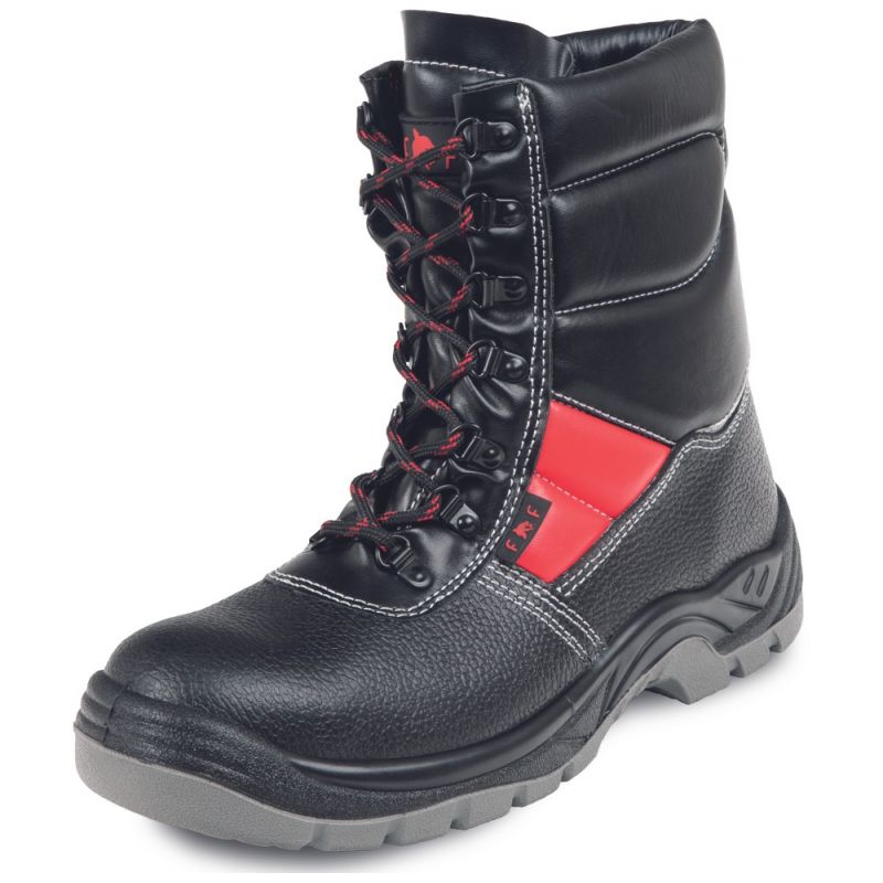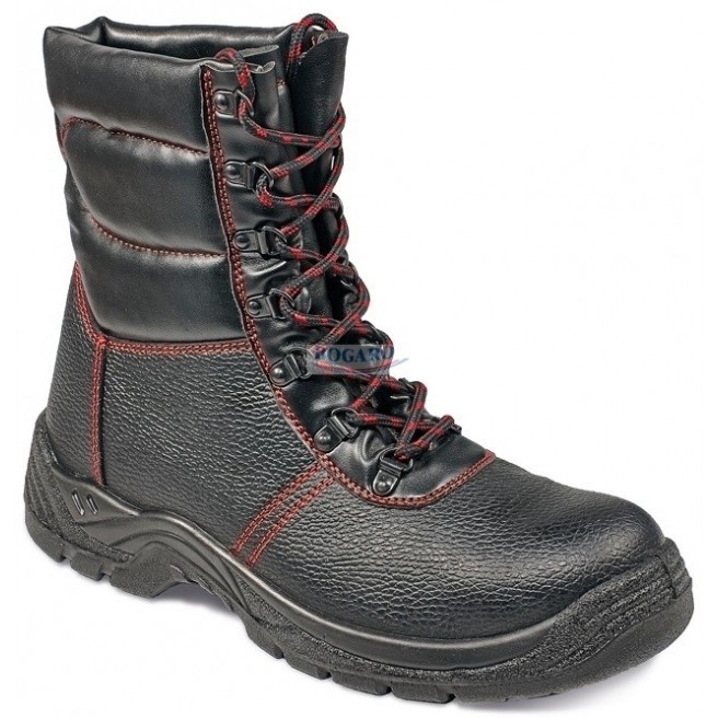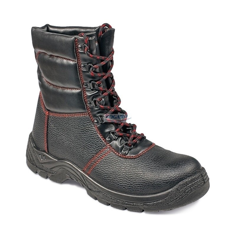 Wysokie trzewiki ochronne ze stalowym podnoskiem i stalową wkładką antyprzebiciową, antystatyczna, olejoodporna podeszwa wykonana z PU/PU. Absorpcja energii w obcasie. Cholewka wykonana z czarnej, wodoodpornej zadrukowanej skóry typu Buffalo.