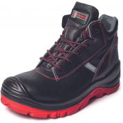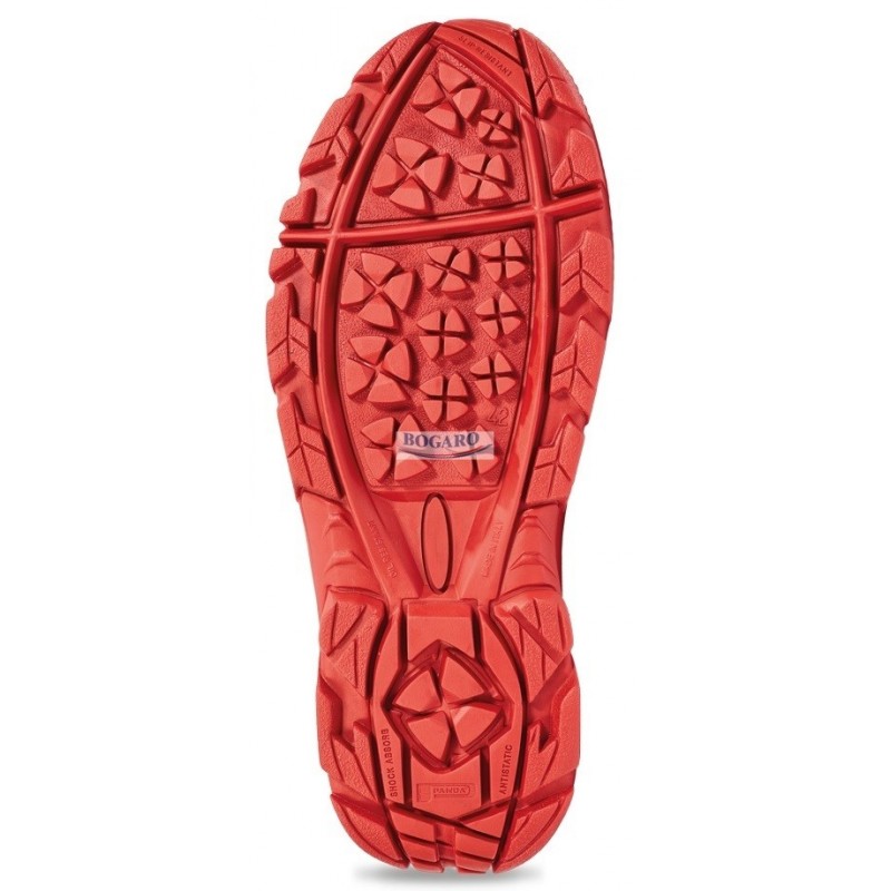 "Wodoodporne trzewiki ochronne z kompozytowym podnoskiem i wkładką antyprzebiciową. Podeszwa z PU i gumy o właściwościach antystatycznych, olejoodpornych i antypoślizgowych. Absorbcja energii w obcasie. Oddychająca skórzana cholewka i elementy odblaskowe zwiększające widoczność użytkownika. Unikalna podeszwa z PU i gumy. Podeszwa zaprojektowana z myślą o zwiększeniu właściwości antypoślizgowych. Zawiera włókno (GRIP FIBRE)."