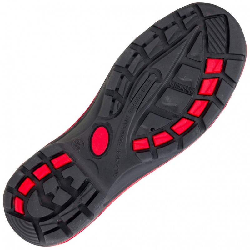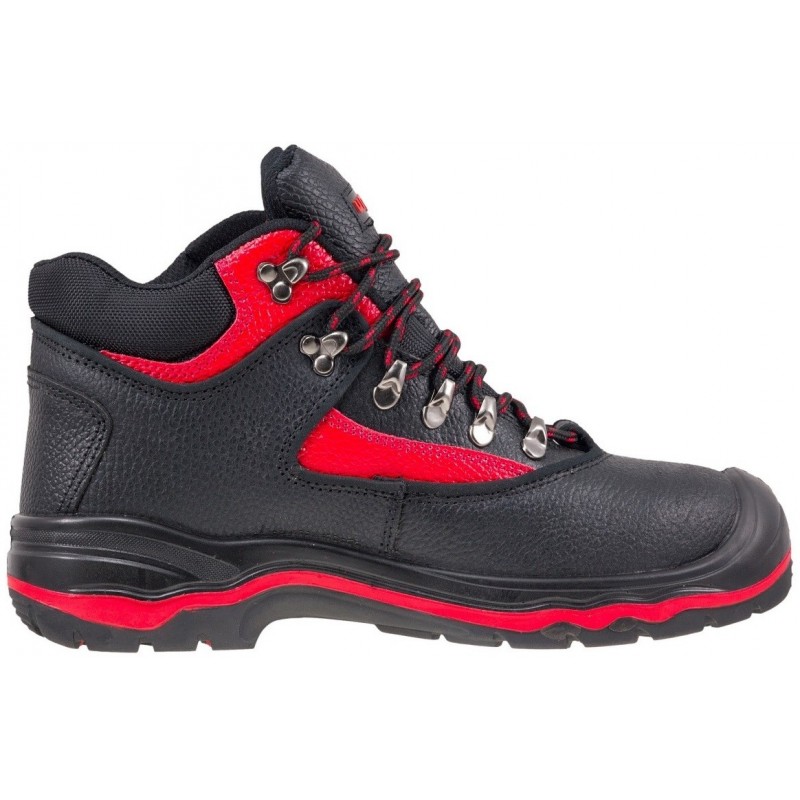 Trzewik bezpieczny z metalowym podnoskiem. Zamknięty obszar pięty, właściwości antyelektrostatyczne, absorpcja energii w pięcie. Odporność na przebicie. Przepuszczalność wody i absorpcja wody. Podeszwa urzeźbiona.