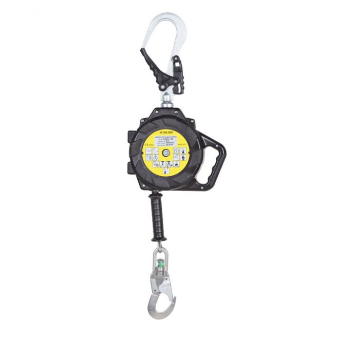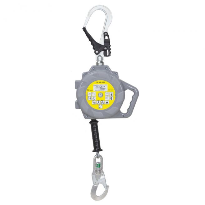 Urządzenie samohamowne CR 251V do pracy w pionie w obudowie z tworzywa sztucznego z rozwijaną liną stalową. Wmontowany na stałe hak AZ 029 o otwarciu większym niż standardowy zatrzaśnik - 50 mm (służący do zaczepiania bezpośrednio do konstrukcji stałej). Urządzenie przeznaczone jest do prac wymagających znacznego przemieszczania w stosunku do punktu zaczepienia. Brak konieczności stosowania amortyzatora bezpieczeństwa.