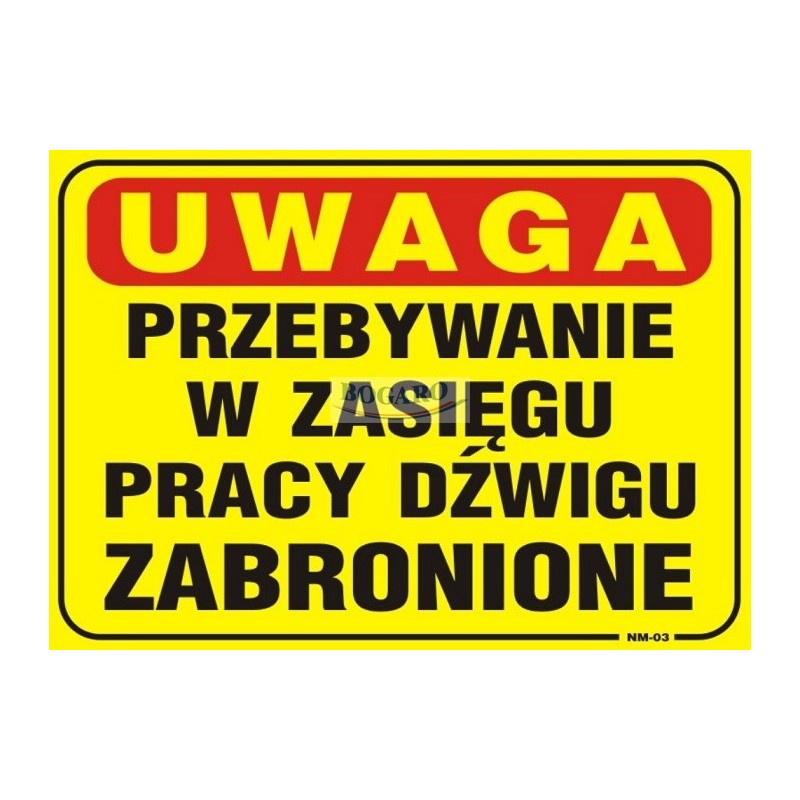 Znak naklejka NM-03 w zasięgu pracy dźwigu